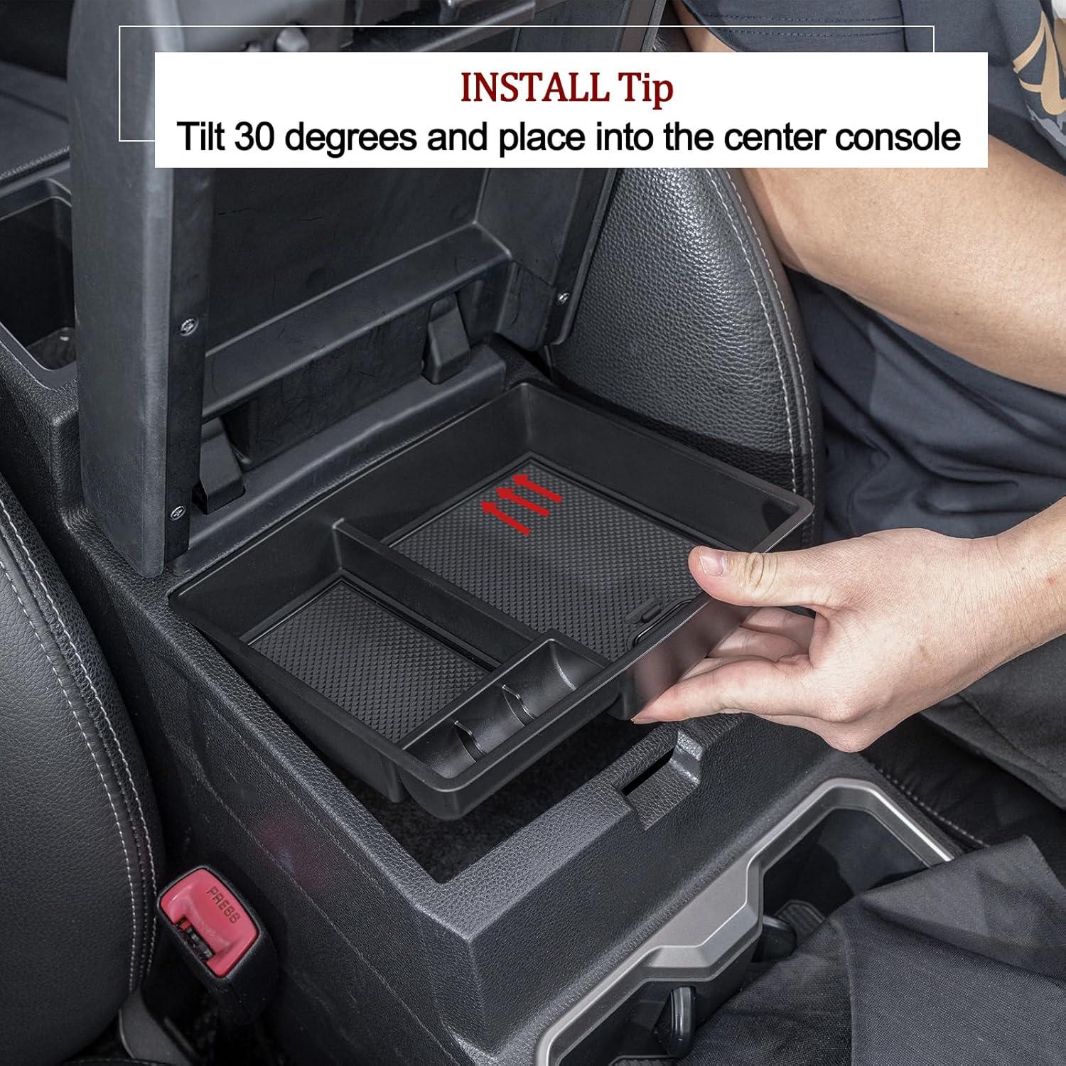 Center Console Organizer—Anti-slip & no rattle: No-slip, removable, rubber tray liners prevent items from sliding and rattling in the Tacoma center console organizer.