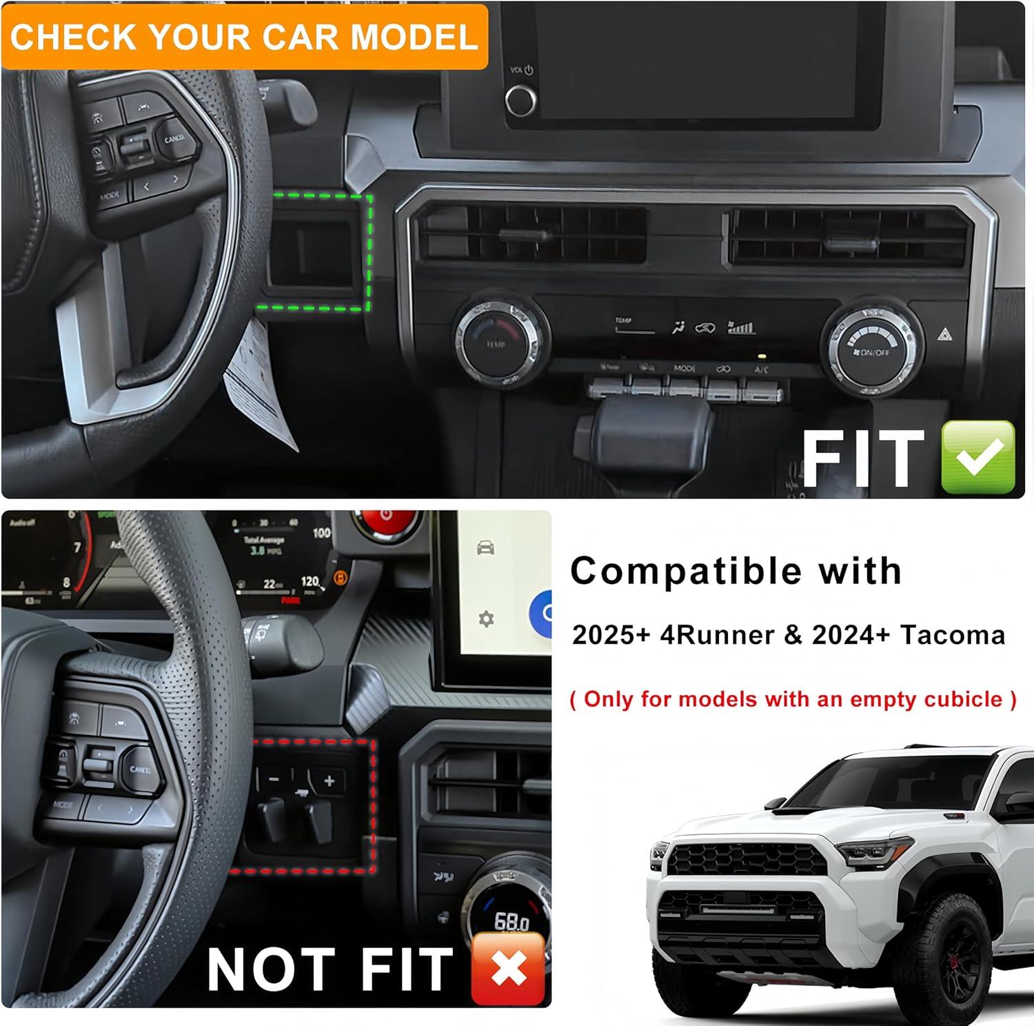 Driver's Drawer Box—Vehicle Fit: This Storage Drawer fits the 2025 2026 4Runner and 2024 2025 2026 Tacoma. (Only for models with an empty cubicle). According to the original car design, it provides hidden storage space, is stable, and will not fall.