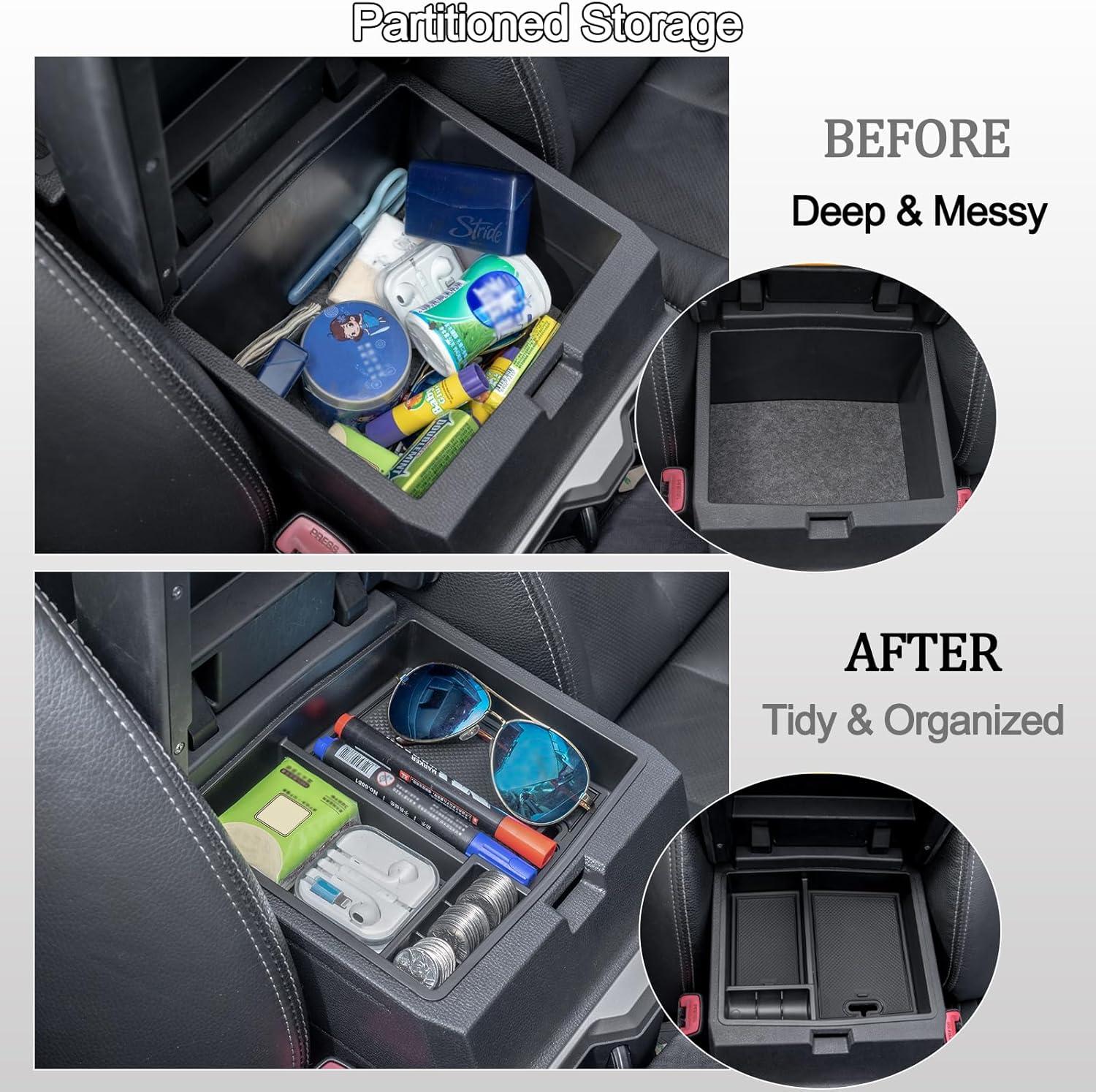 Center Console Organizer—Efficient organizer: Say goodbye to the MESSY Tacoma center console. Different-sized compartments have different functions to keep things tidy and orderly. You can clearly view and access small items – smartphones, wallets, coins, keys, chewing gum, etc.