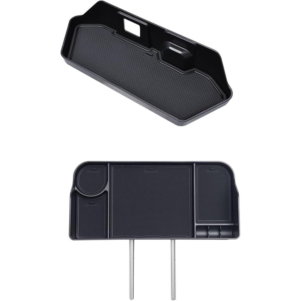 Headrest Organizer — Patented Design: The Front Center Seat Headrest Tray is specifically tailored for 2011-2024 2025 F150 F250 F350 F450 F550 F650—ONLY for jump seat console, NOT for bucket seat console and the console with work surface. (Package includes: console tray*1, rubber pads*4, mounting rod*1)