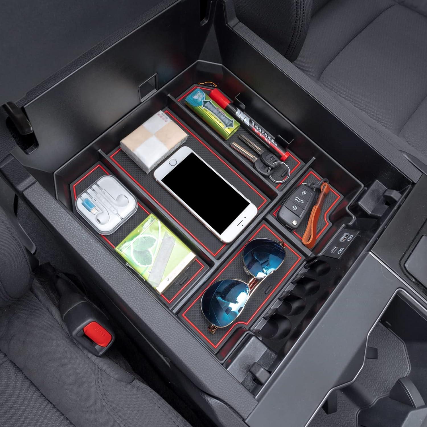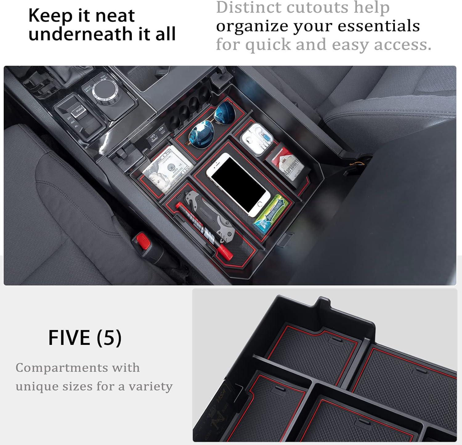 Category Items Better: Say goodbye to the messy center console! The Tundra center console storage box is divided into 5 independent areas with different capacities to keep things tidy and well-organized.