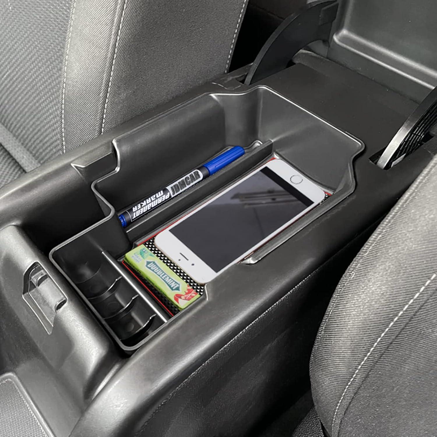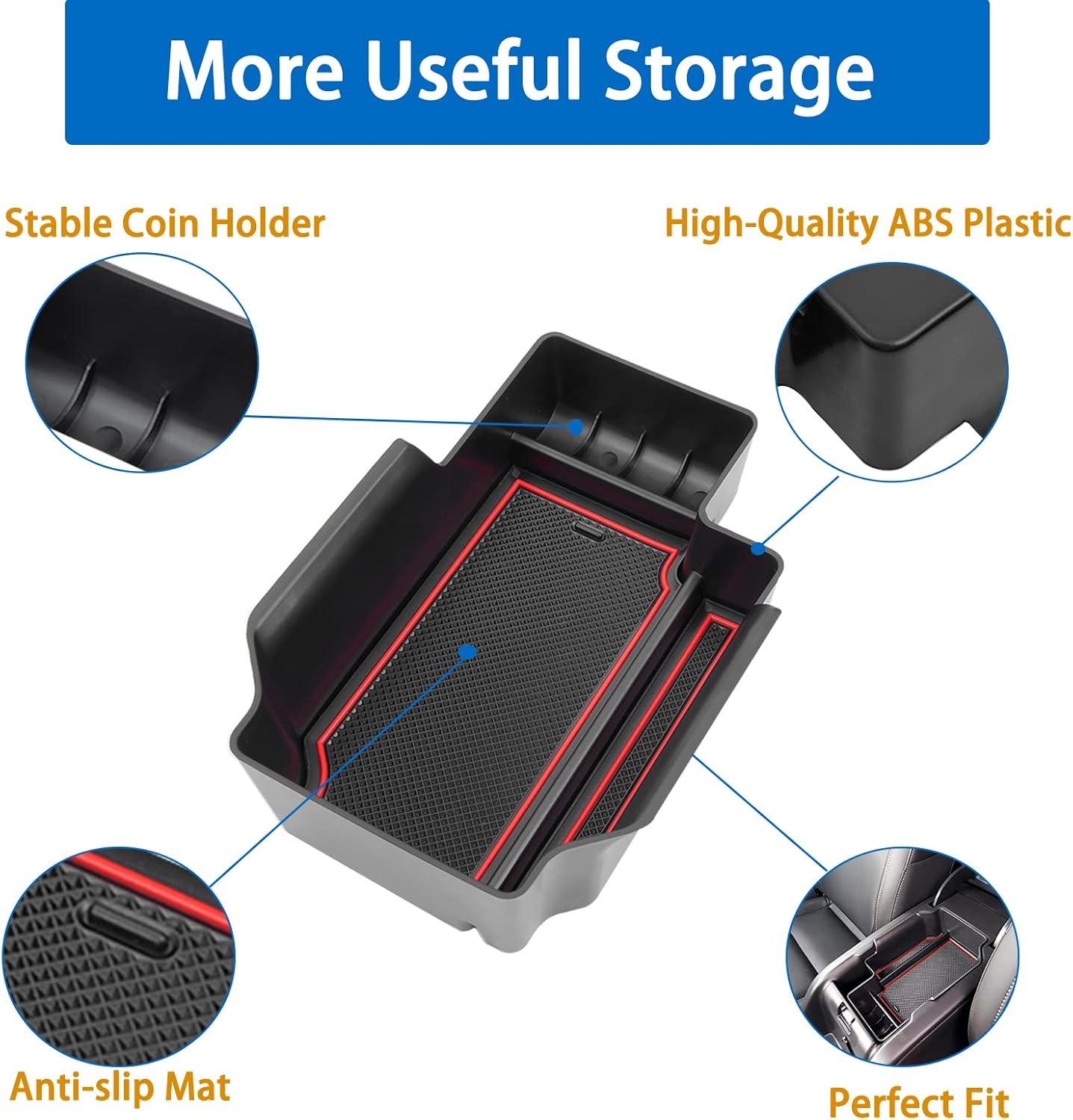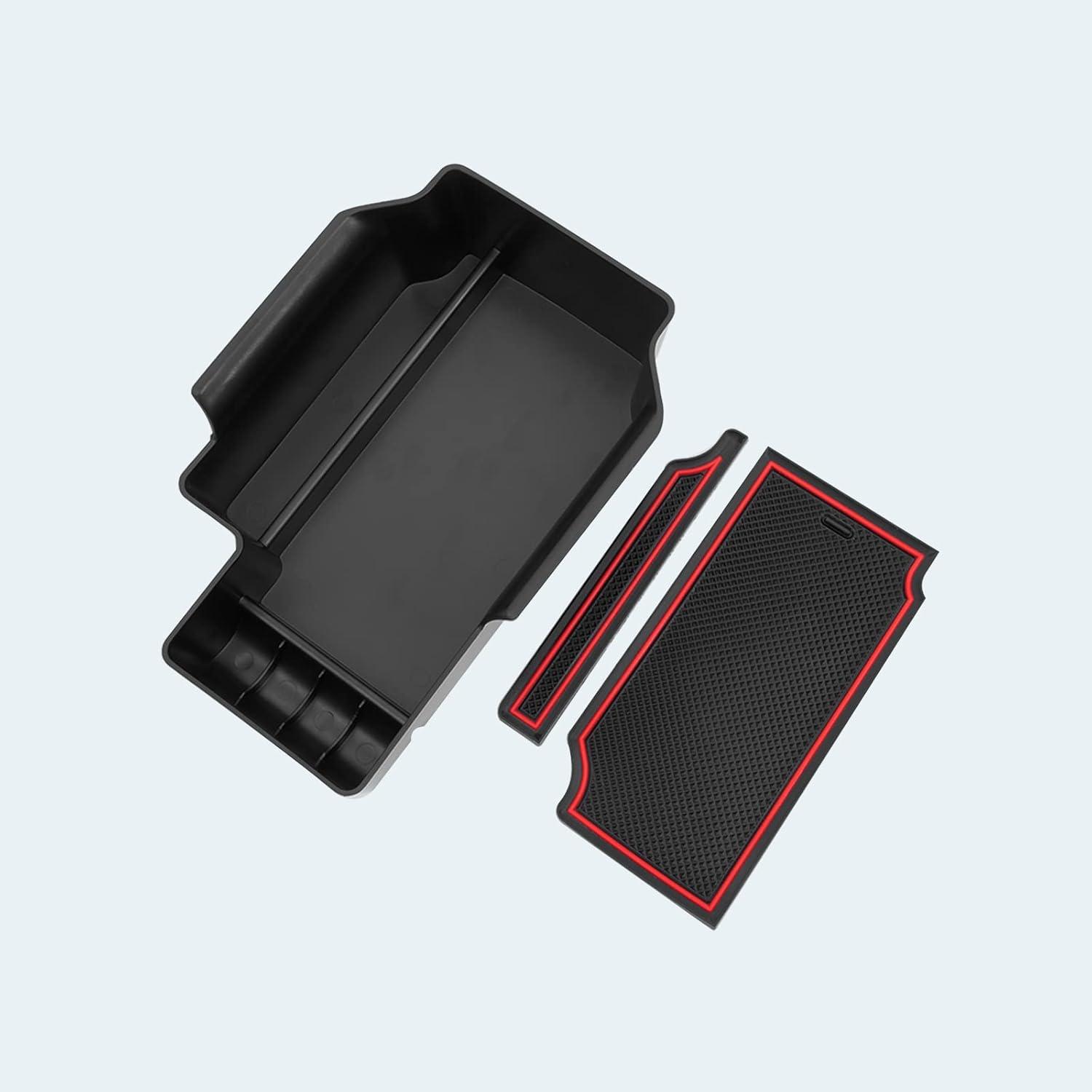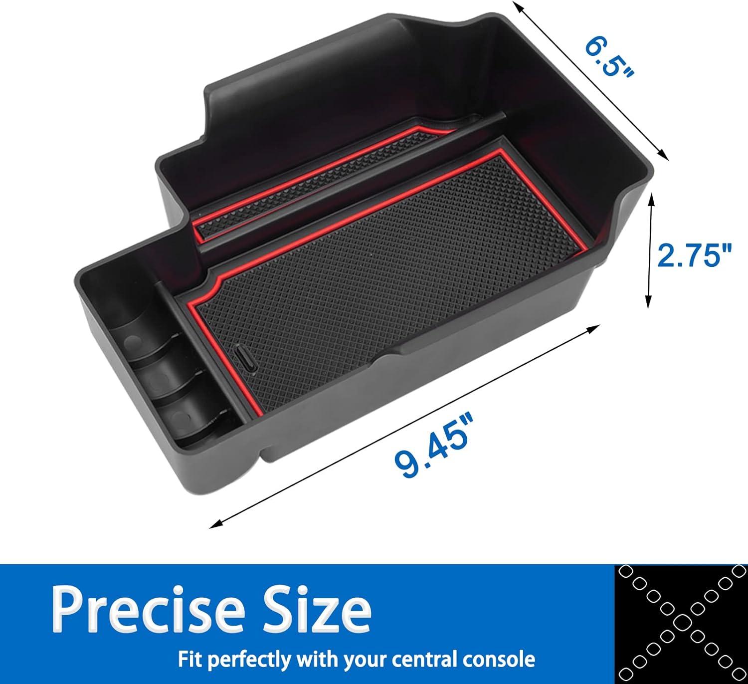 JDMCAR Center Console Organizer Compatible with 2023 2024 2025 2026 Chevy Colorado/GMC Canyon Accessories, Coin Container Armrest Secondary Storage Box with Non-Slip Silicone Mat (Black Trim)(Red Trim)