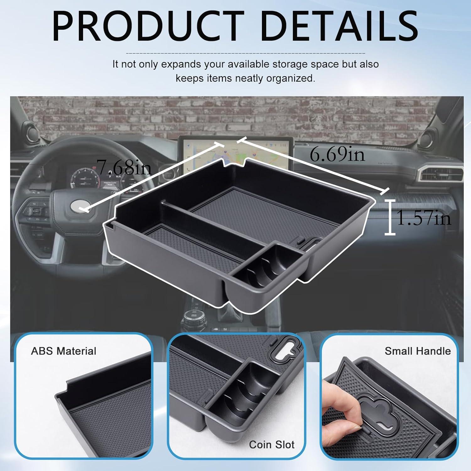 Efficient organizer: Say goodbye to the MESSY Tacoma center console. Different-sized compartments have different functions to keep things tidy and orderly. You can clearly view and access small items – smartphones, wallets, coins, keys, chewing gum, etc.