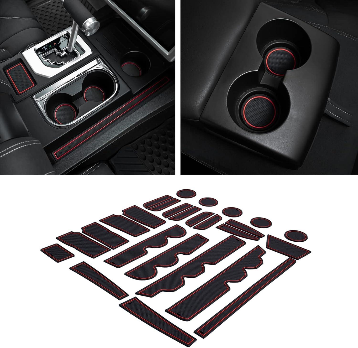 JDMCAR Center Console Organizer (Full Tray,Red Trim) and Liner Accessories (Bucket Seat,Red Trim) Compatible with Toyota Tundra 2014-2021