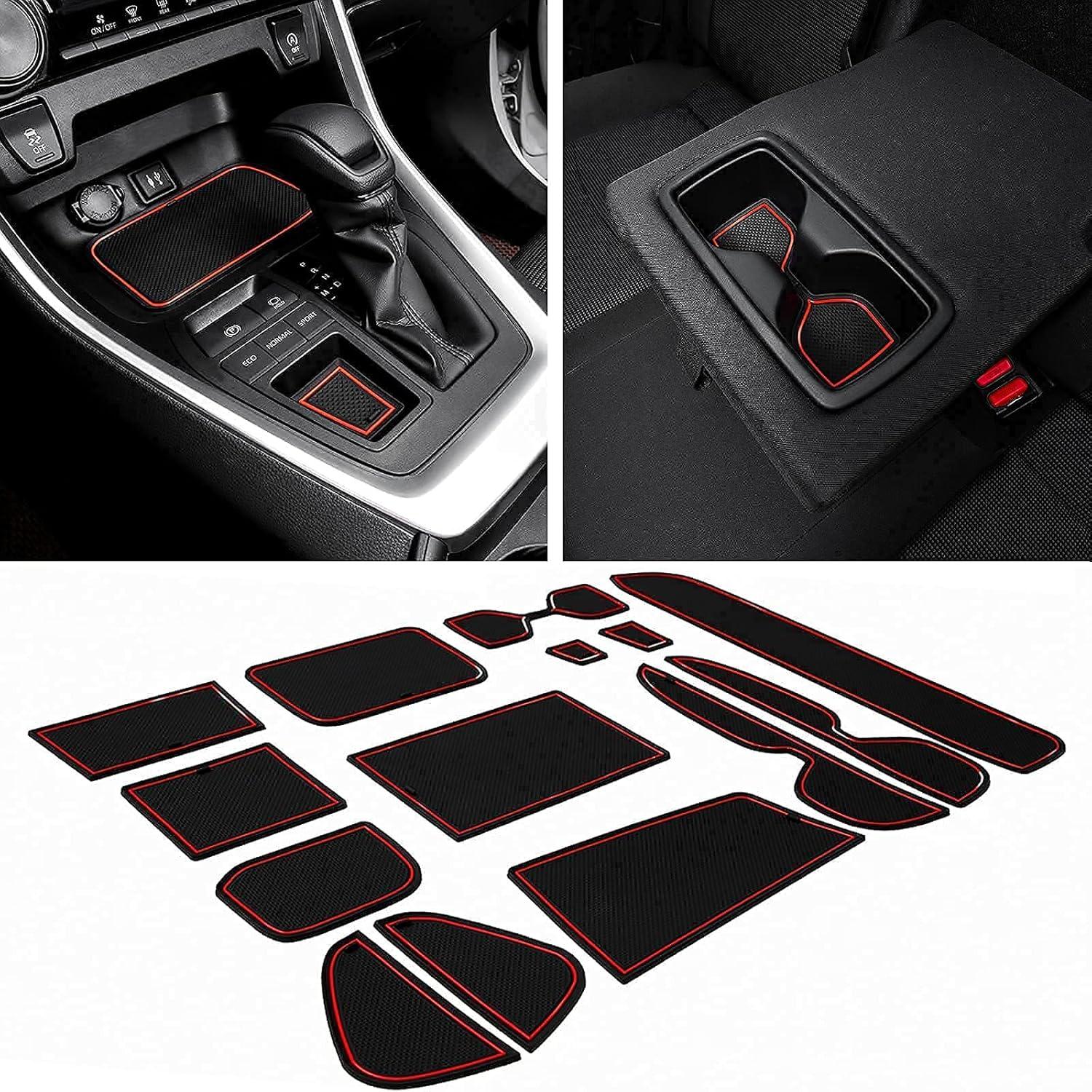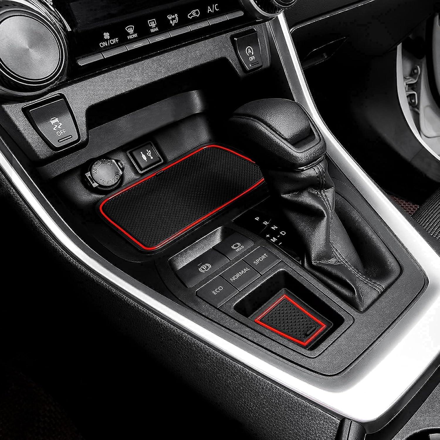 imageJDMCAR Center Console Organizer Tray and Rubber Liners Red Trim Compatible with 2019 RAV4