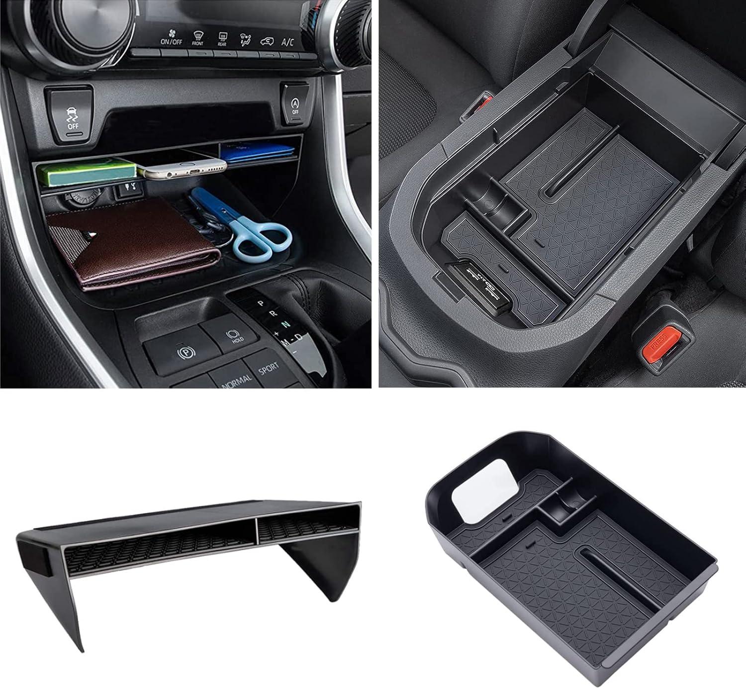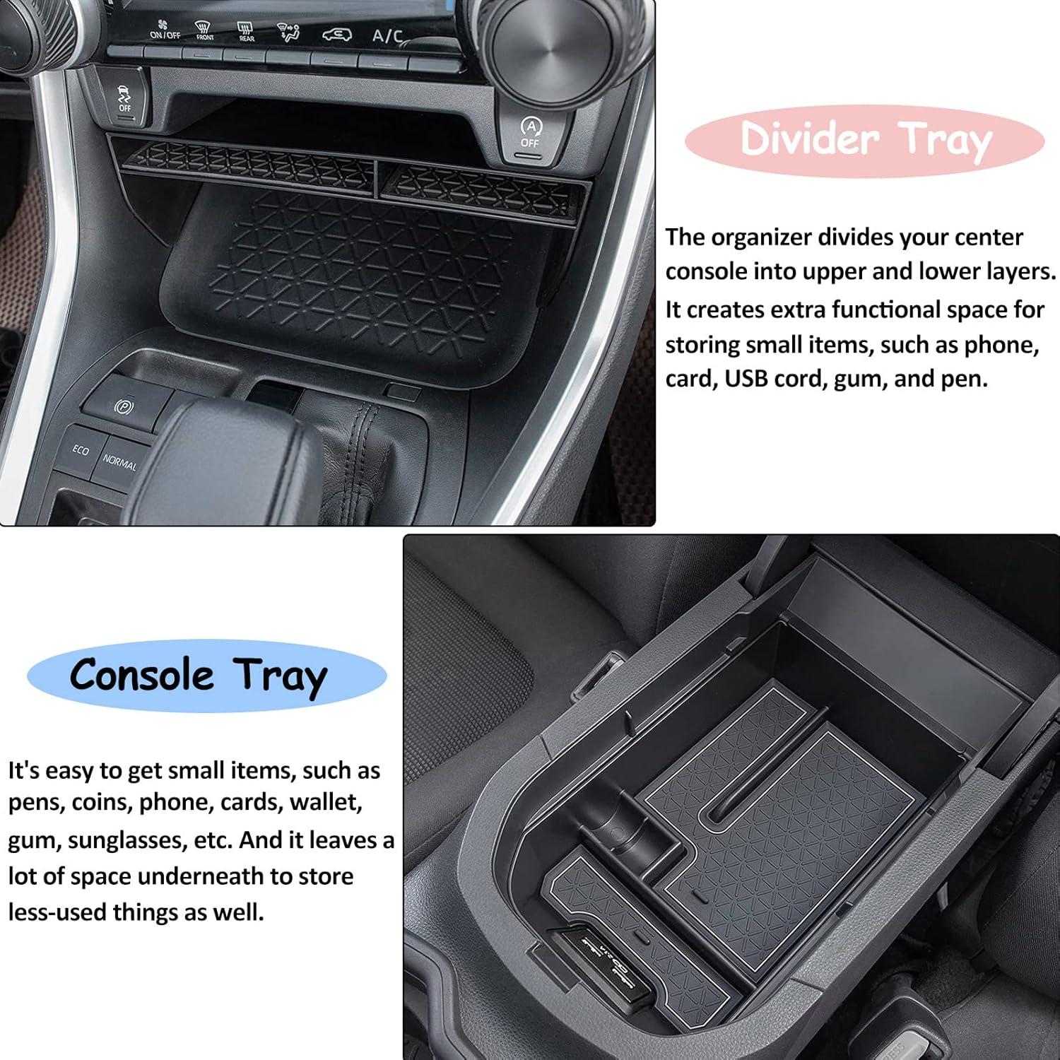 2PCS Center Console Organizer Tray and Armrest Storage Box —Effective space-saving: This RAV4 center console tray turns the center console into a 2-layer area. Nice for storing small items such as pens, card, phone, gum, coins, sunglasses, etc while less-used items can go underneath. It can help you organize small projects so that you can get them quickly when you need them.