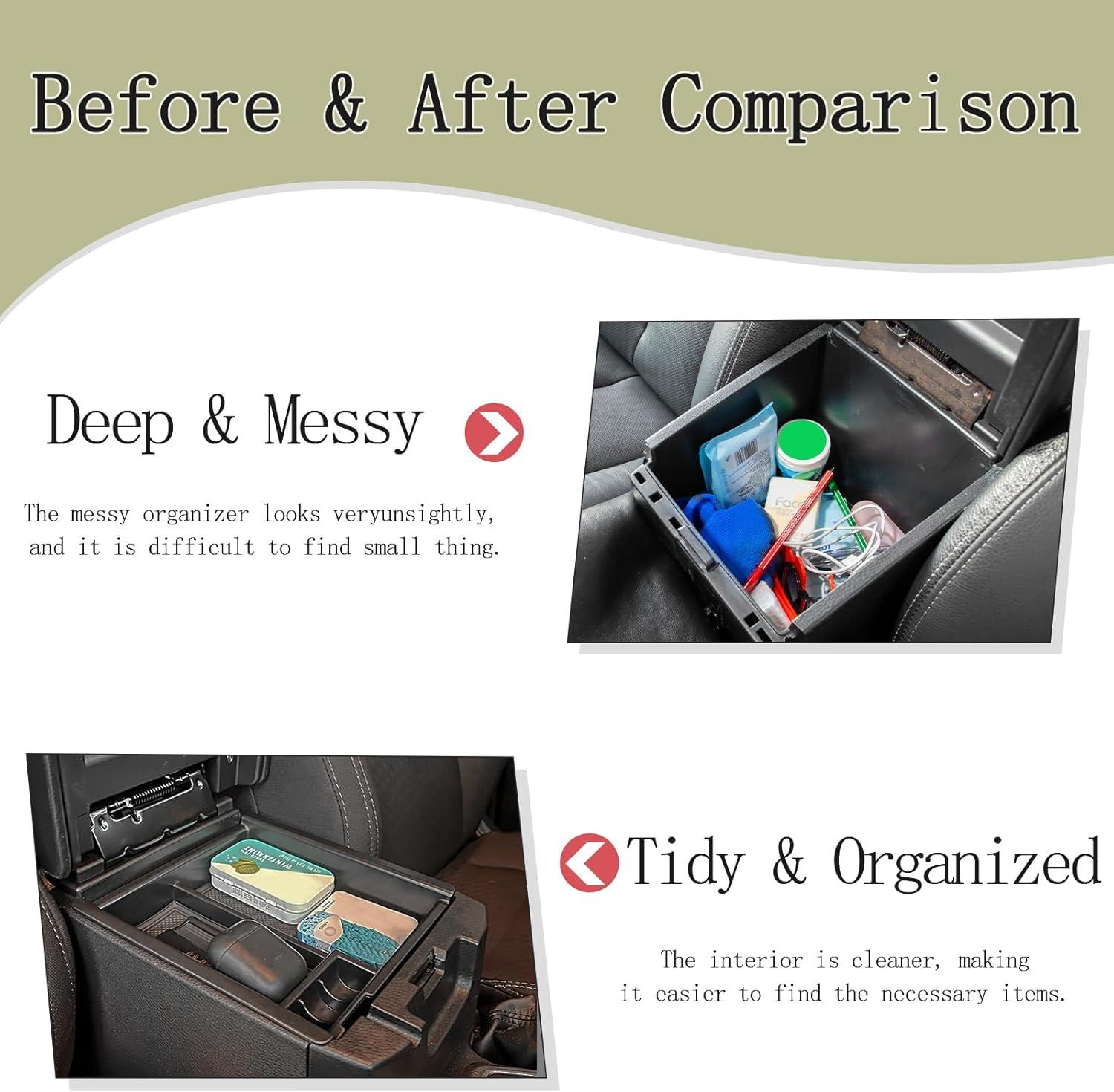 【CHECK FIRST】 The console organizer fits for tacoma 2023 2022 2021 2020 2019 2018 2017 2016, including SR, SR5, TRD Sport, TRD Off-Road,Limited and TRD Pro. Maximize the storage in your Tacoma center console, Keep your armrest storage in a more organized shape.