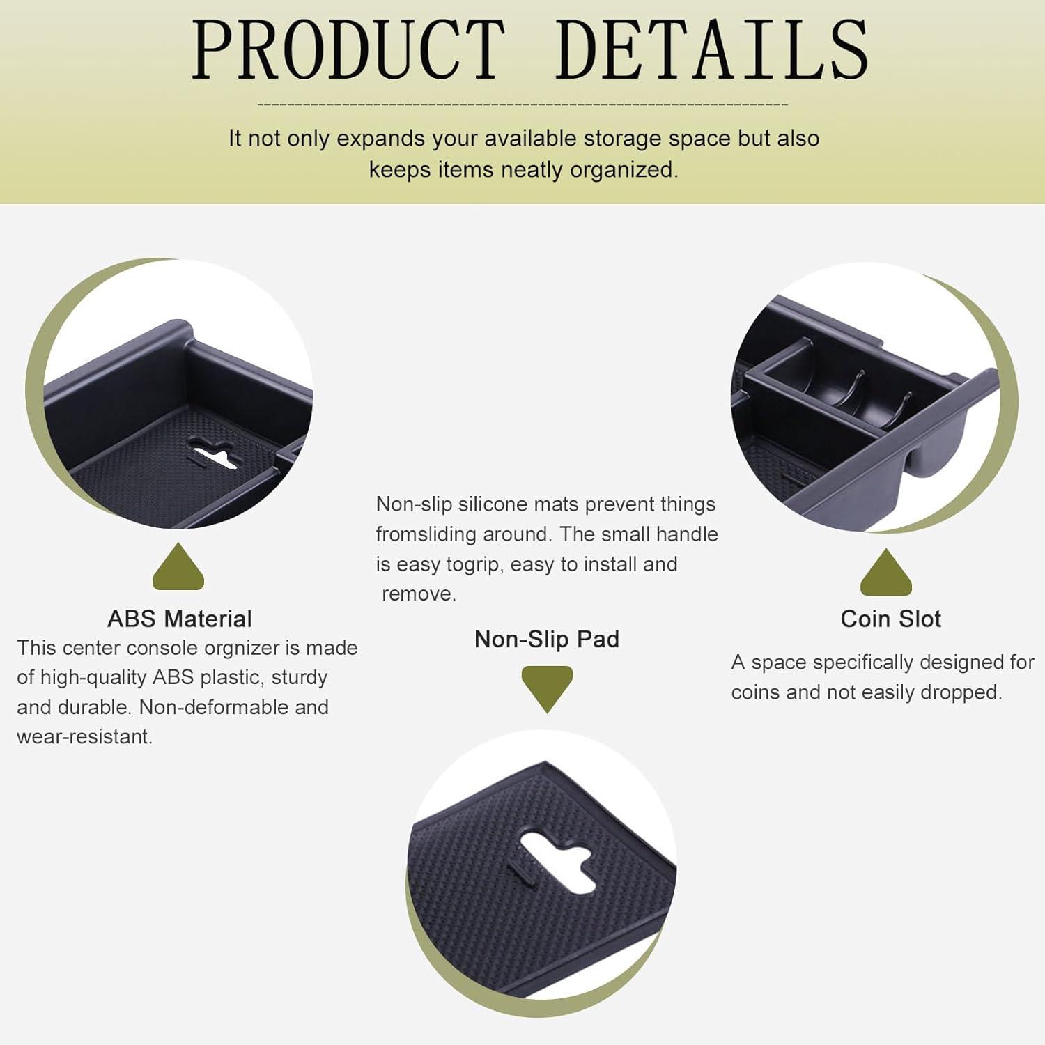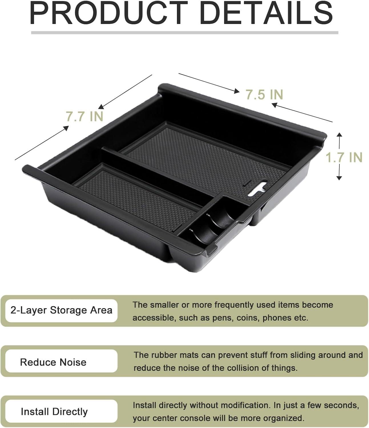 【NO-SLIP】No-slip, removable, rubber tray liners prevent items from sliding and rattling in the tacoma center console organizer.