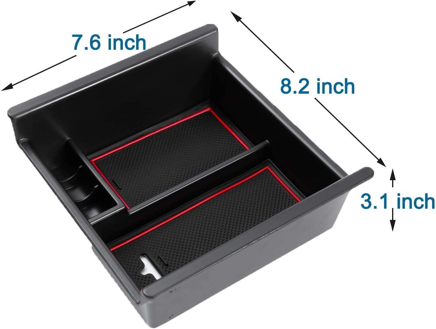Center console tray— Same size with original car, install directly, no need to modify. Non- slip tray liner prevents items from sliding and rattling in the tray.