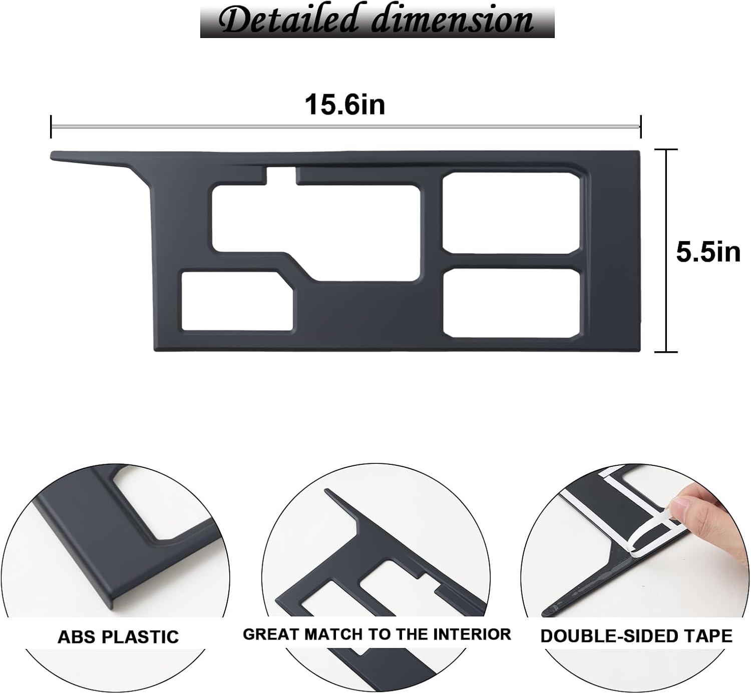 High quality: Made of High-quality black ABS plastic, sturdy and durable. It comes with double-sided tape. The tape used is very secure, easy to place, and covers up the easily scratch-able center console.