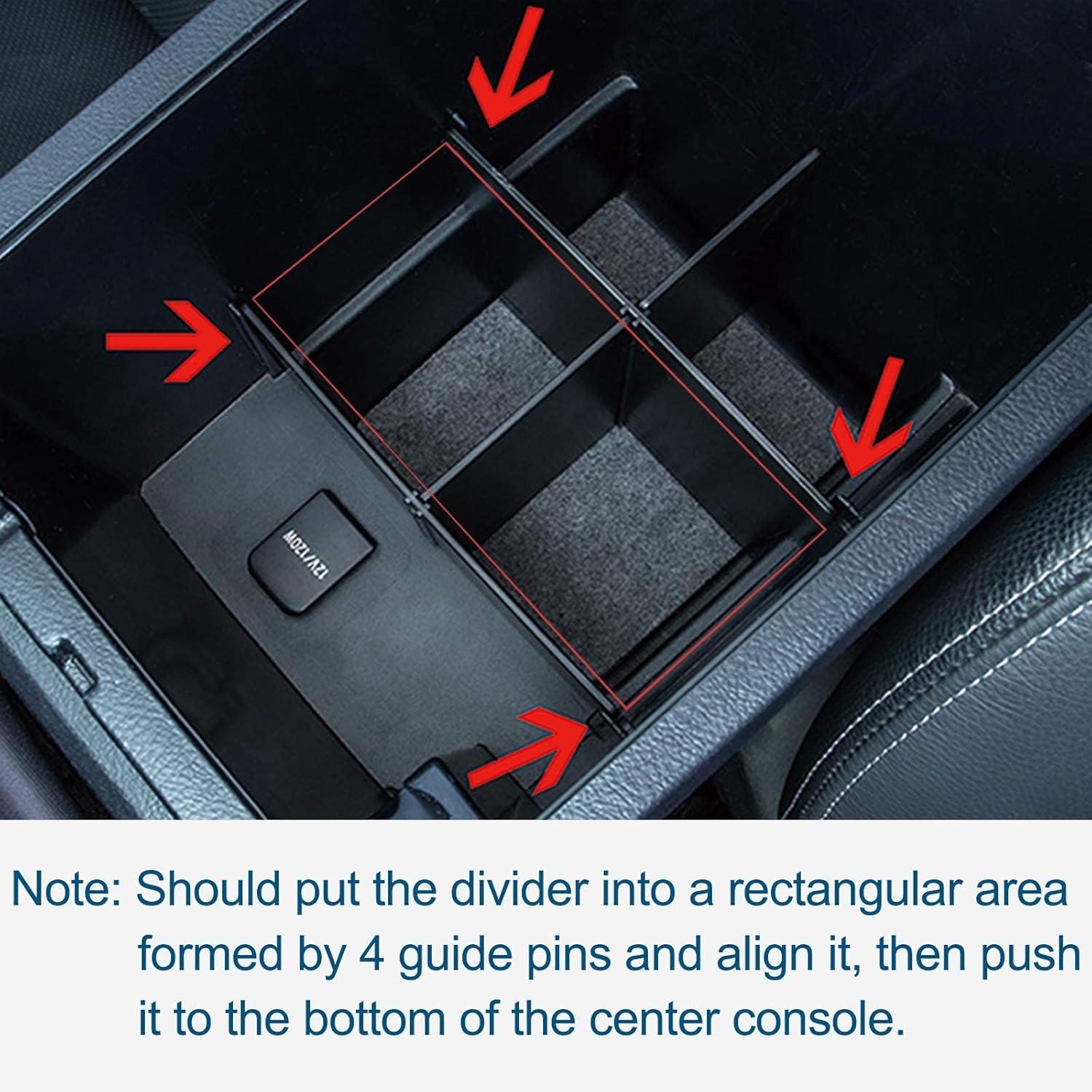 Center Cosnole Divider— INSTALLATION TIPS: The OEM factory divider at the front of the console must be removed prior to installing the JDMCAR Organizer. It lifts out with no tools. Once removed it will allow the JDMCAR Organizer to contact the bottom of the console. Installation video available, please check our listing video. Or scan the QR code on the guide of installation when you get the product.