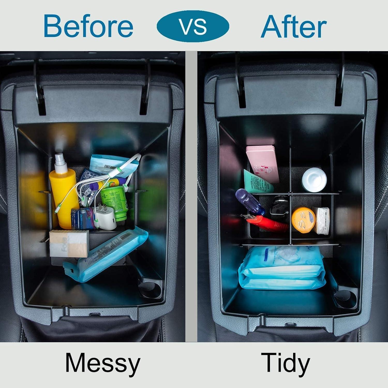 Center Cosnole Divider— INSTALLATION TIPS: The OEM factory divider at the front of the console must be removed prior to installing the JDMCAR Organizer. It lifts out with no tools. Once removed it will allow the JDMCAR Organizer to contact the bottom of the console. Installation video available, please check our listing video. Or scan the QR code on the guide of installation when you get the product.