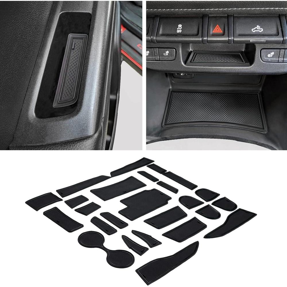 【PROTECTION】The rubber kit cover all the pockets, including cup holder, door pocket and center console. They provide protection from crumbs, minor spills, melted candy, scratches, and rattling coins in the hard plastic slot. Simply wash it with water to clean up any dirt. There is a diagram in the package to show where each piece goes, so it will take 5-7 minutes to install these liners.