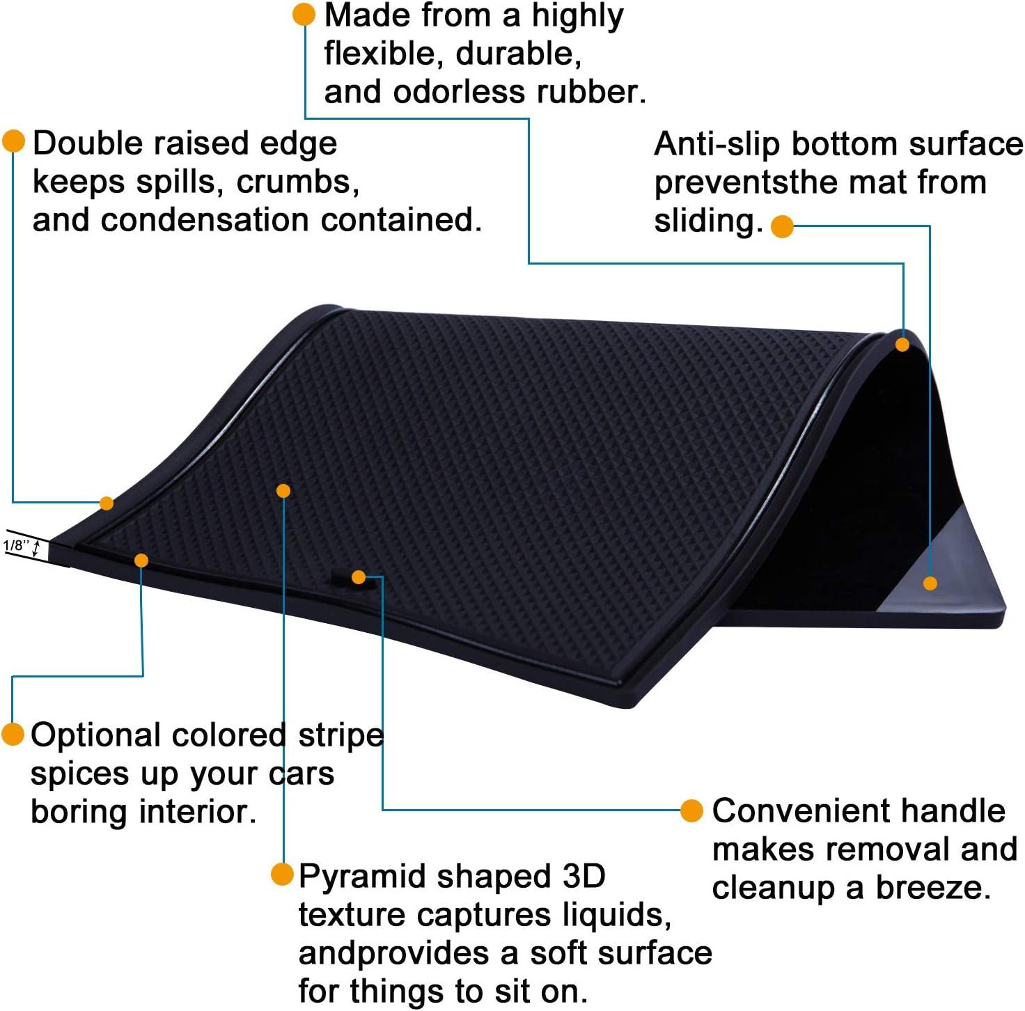 【NON-SLIP & NON RATTLING】:Made from durable DURABLE & HIGH FLEXIBLE rubber that allows the pad to bend and contour into the car's pocket while also providing a non-slip surface to set the item on.They also prevent the random items from rattling, such as ratchet straps placed in the door pocket.