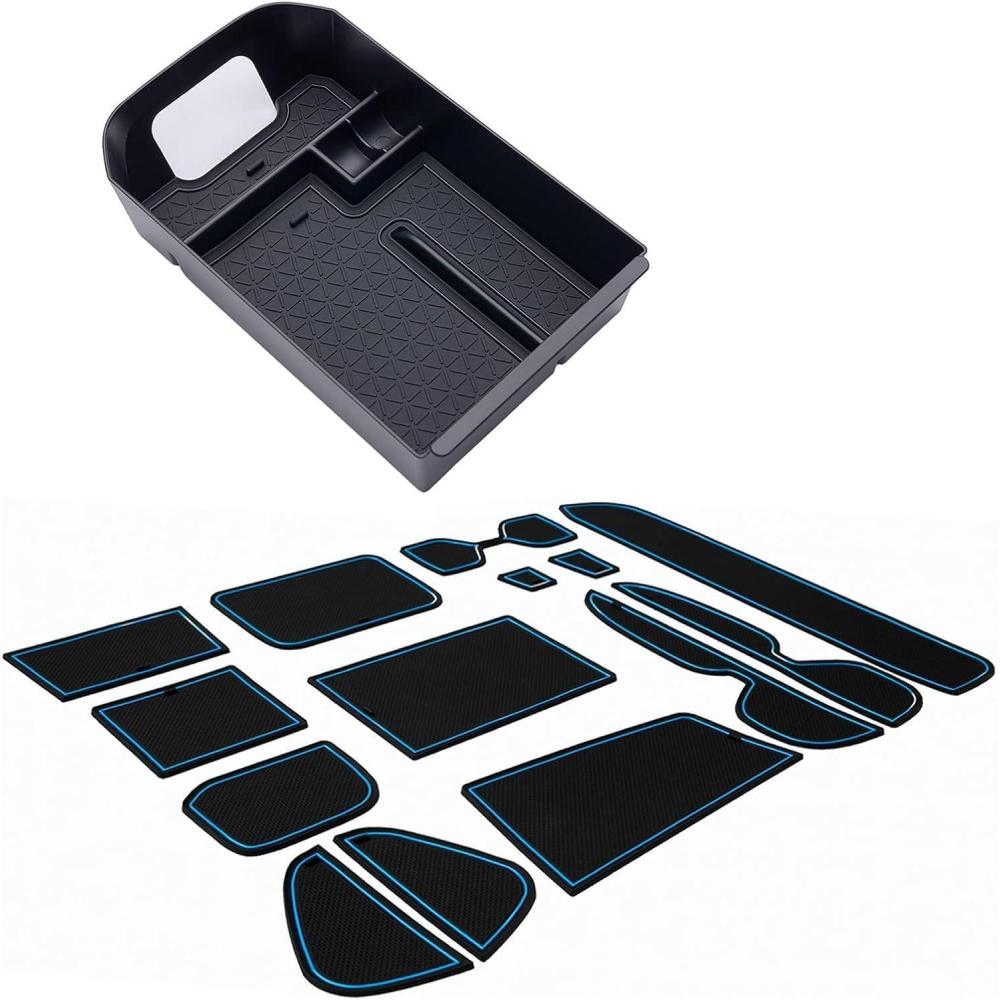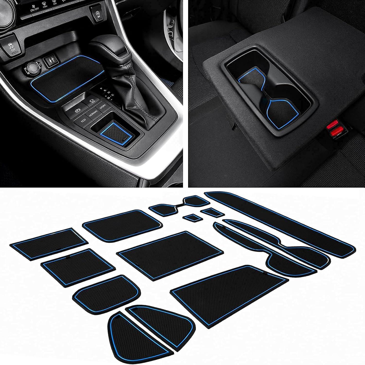 JDMCAR Custom Liners (Blue Trim) and Center Console Organizer Compatible with 2022 2021 2020 2019 RAV4 Accessories