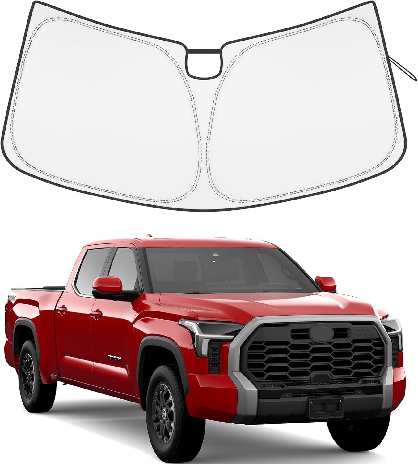 Windshield Sun Shade—Vehicle Fit: The Front Sunshade Shield is Compatible with 2022 2023 2024 Tundra, including SR, SR5, Limited, Platinum, TRD Pro,1794 Edition, and Capstone. Full covered your windshield, perfect fit for Your 2022+ Tundra.