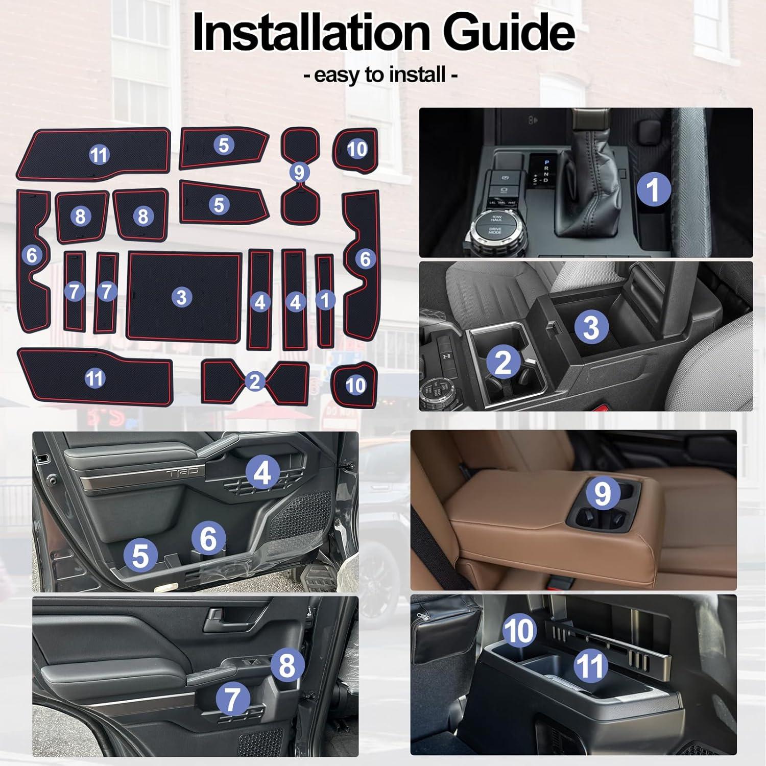Liner Accessories —Patented Design: These cup holder liners are fit for the 2025 4Runner. (Note: #10 #11 does not fit for the 7 PASSENGER SEATING). With Non-skid Backing&Small Handles on the mats, it provides a convenient way for you to keep your car more neat.