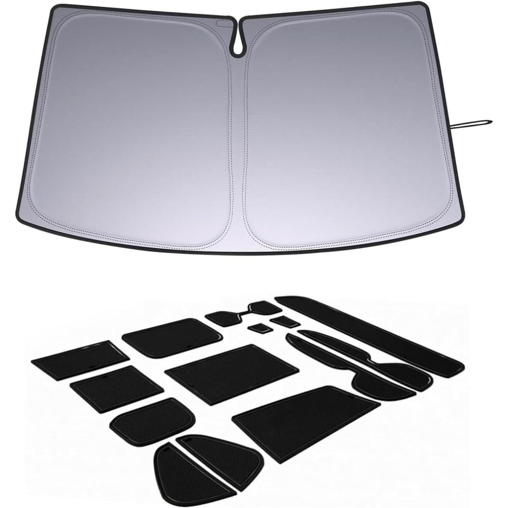 JDMCAR Liner Accessories (Black Trim) and Upgrade Front Windshield Sun Shade Compatible with Toyota RAV4 Accessories 2019-2024