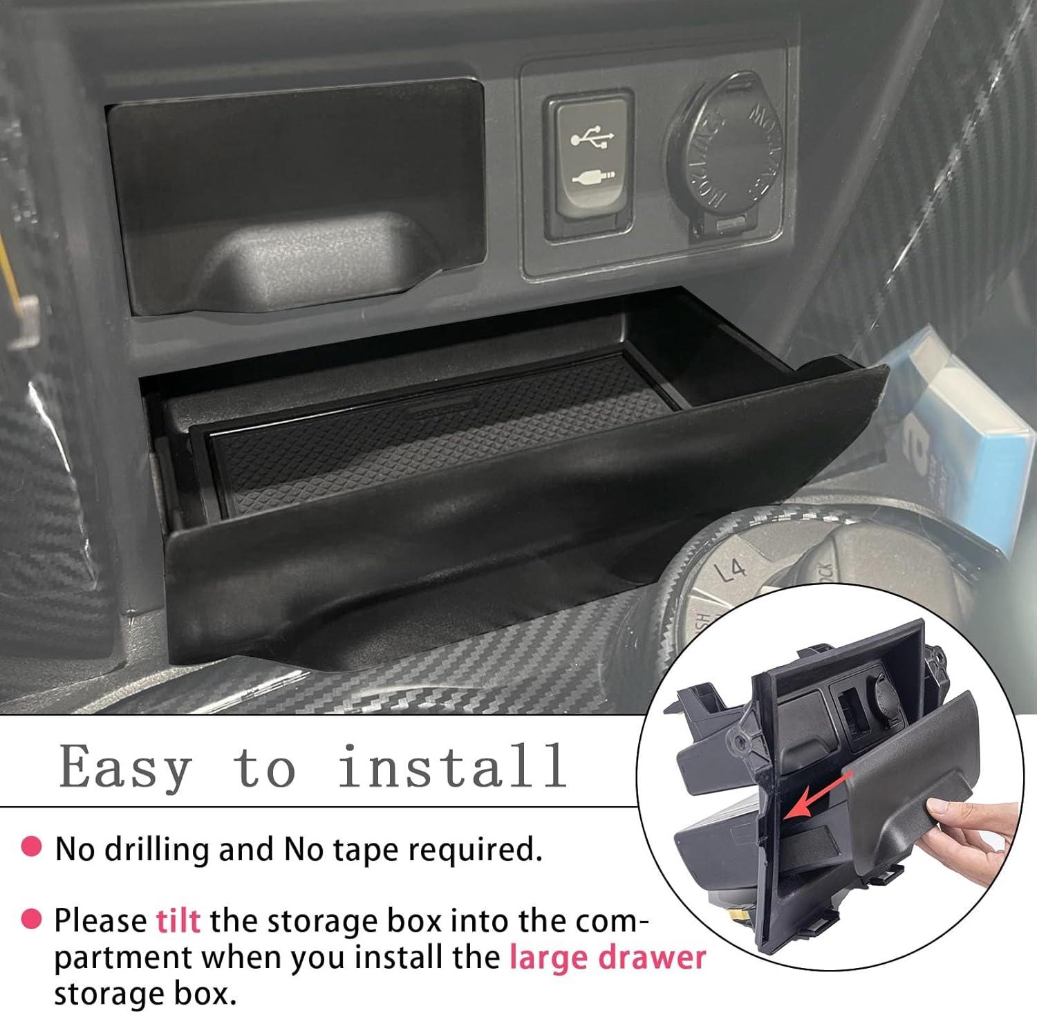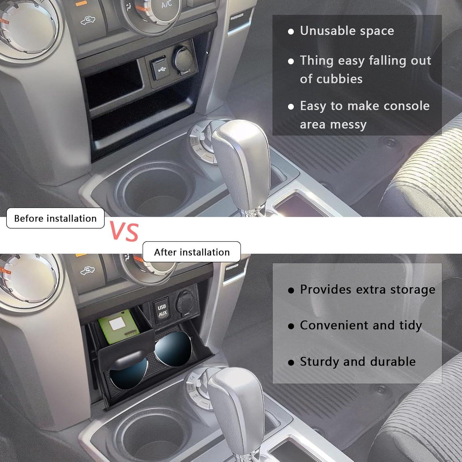 Storage Drawer—Patented Design: This Storage Drawer fits for 2014-2024 4runner. Please ensure your truck has these two cubbies before ordering, some trim levels or models might not come with these two cubbies and might have a full switchplate there instead.