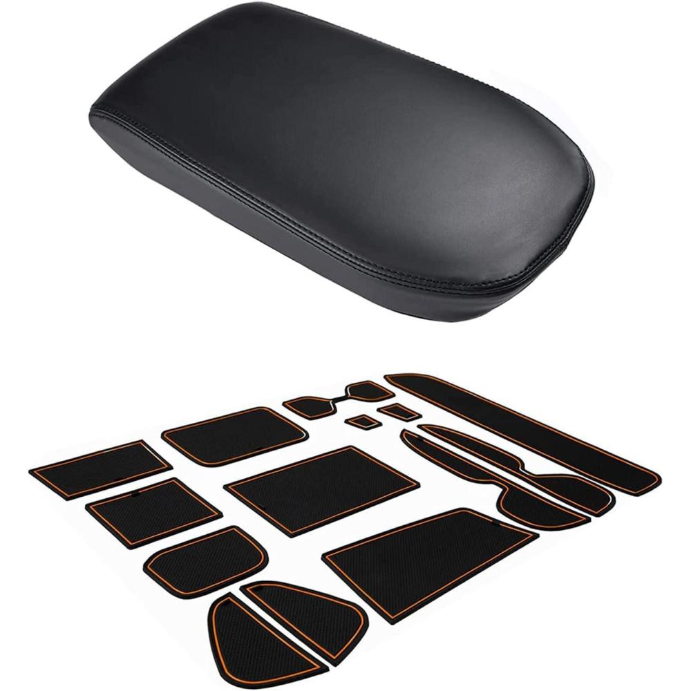 Center Console Cover (Black)—Premium material: The armrest cover is made of high-quality leather which is soft, light, and wear-resistant. The back of the console cover is designed with anti-slip material.