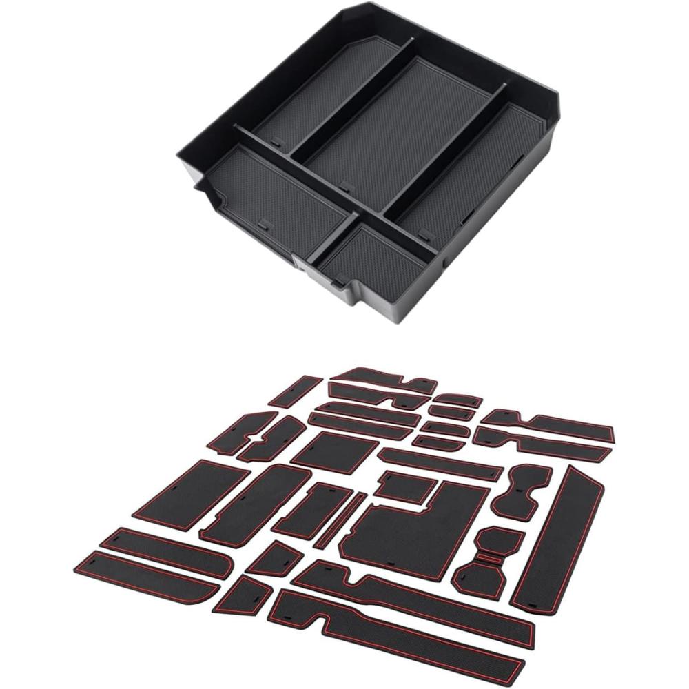 JDMCAR Liner Accessories (Red Trim) and Center Console Organizer (Black Trim) Compatible with 2022 2023 Toyota Tundra Accessories
