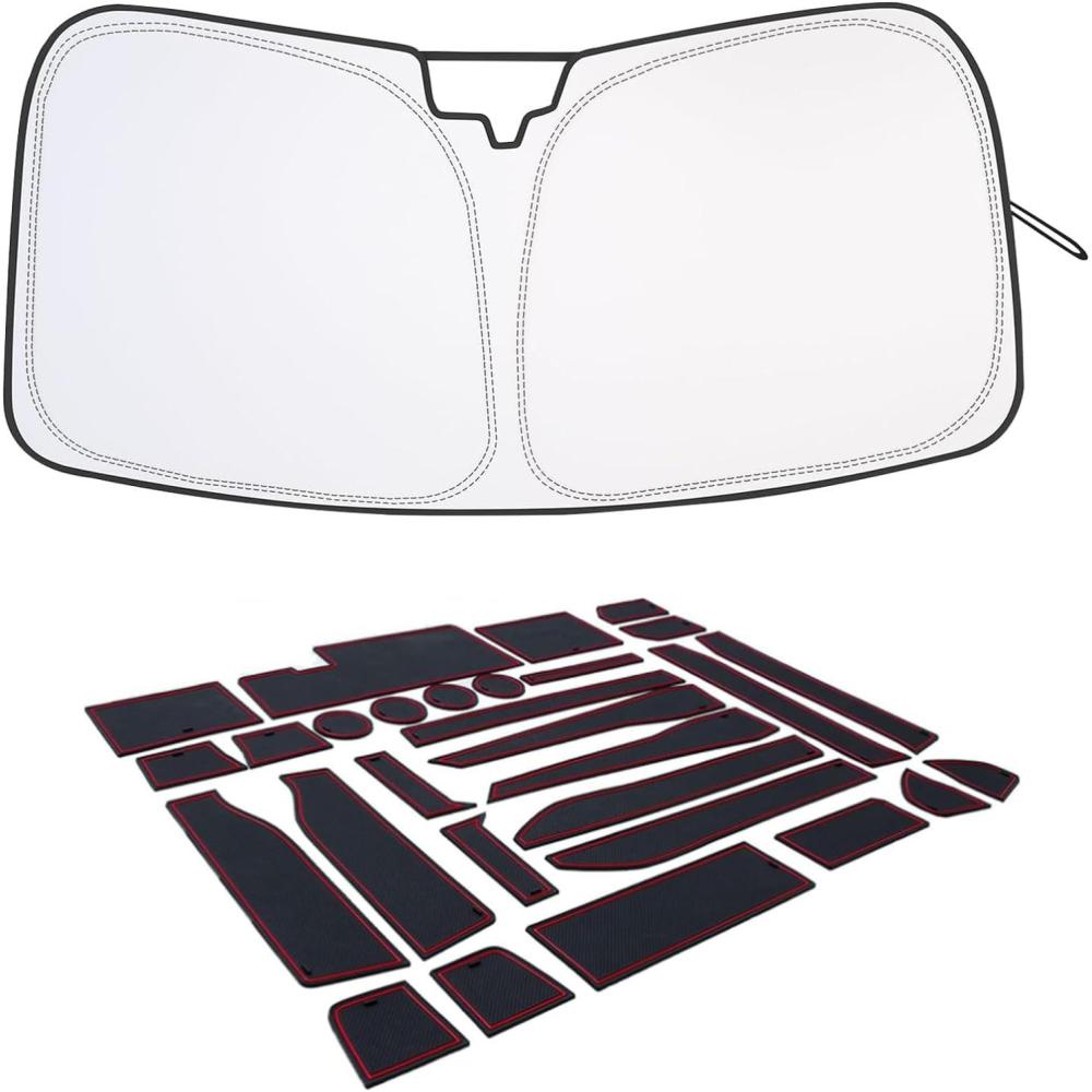 JDMCAR Liner Accessories (Red Trim) and Foldable Windshield Sunshade Compatible with 2015-2020 Ford F150