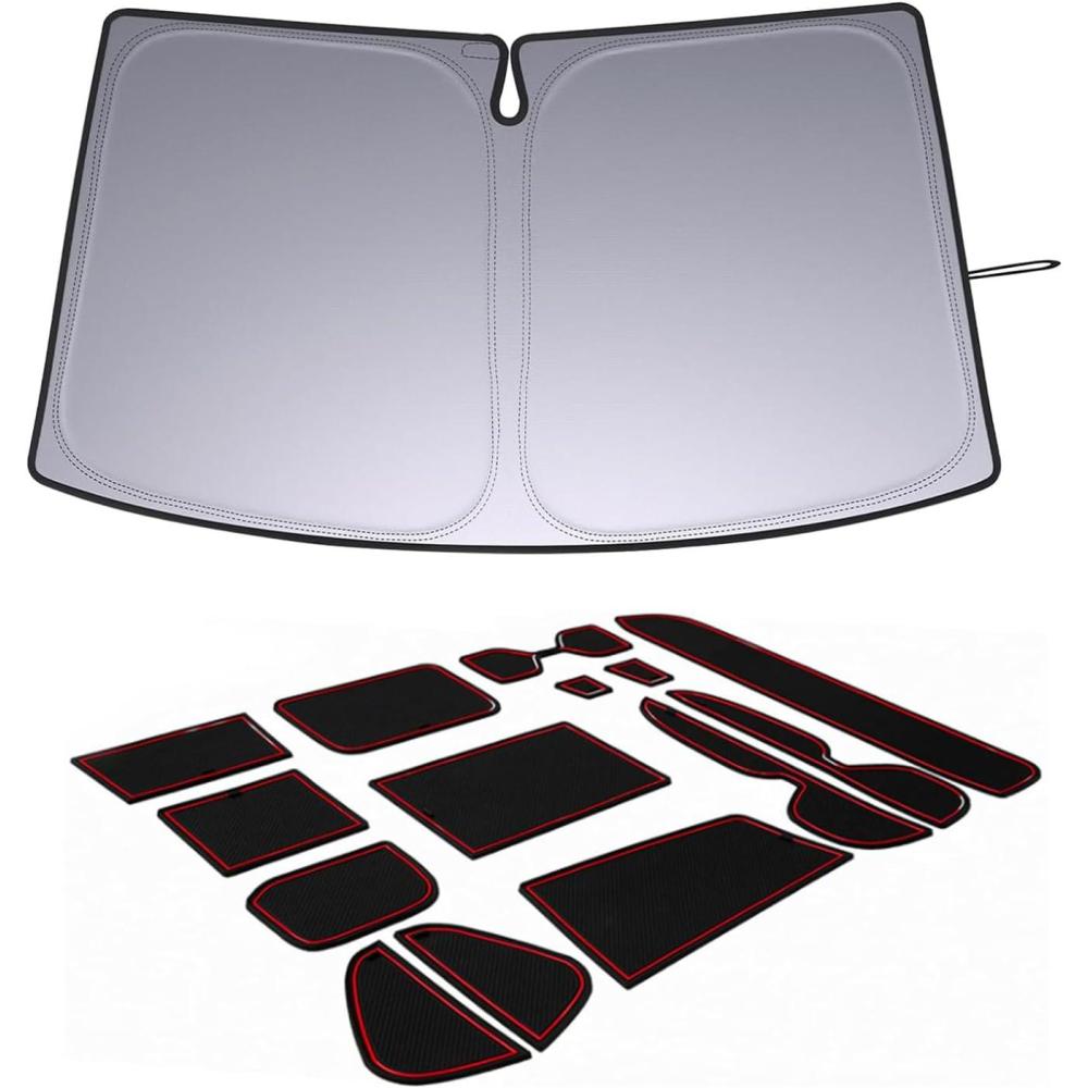 JDMCAR Liner Accessories (Red Trim) and Upgrade Front Windshield Sun Shade Compatible with Toyota RAV4 Accessories 2019-2024