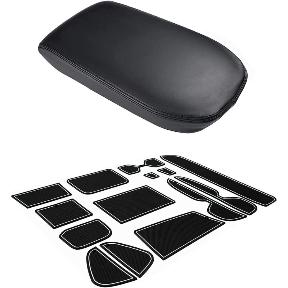 Center Console Cover (Black)—Premium material: The armrest cover is made of high-quality leather which is soft, light, and wear-resistant. The back of the console cover is designed with anti-slip material.