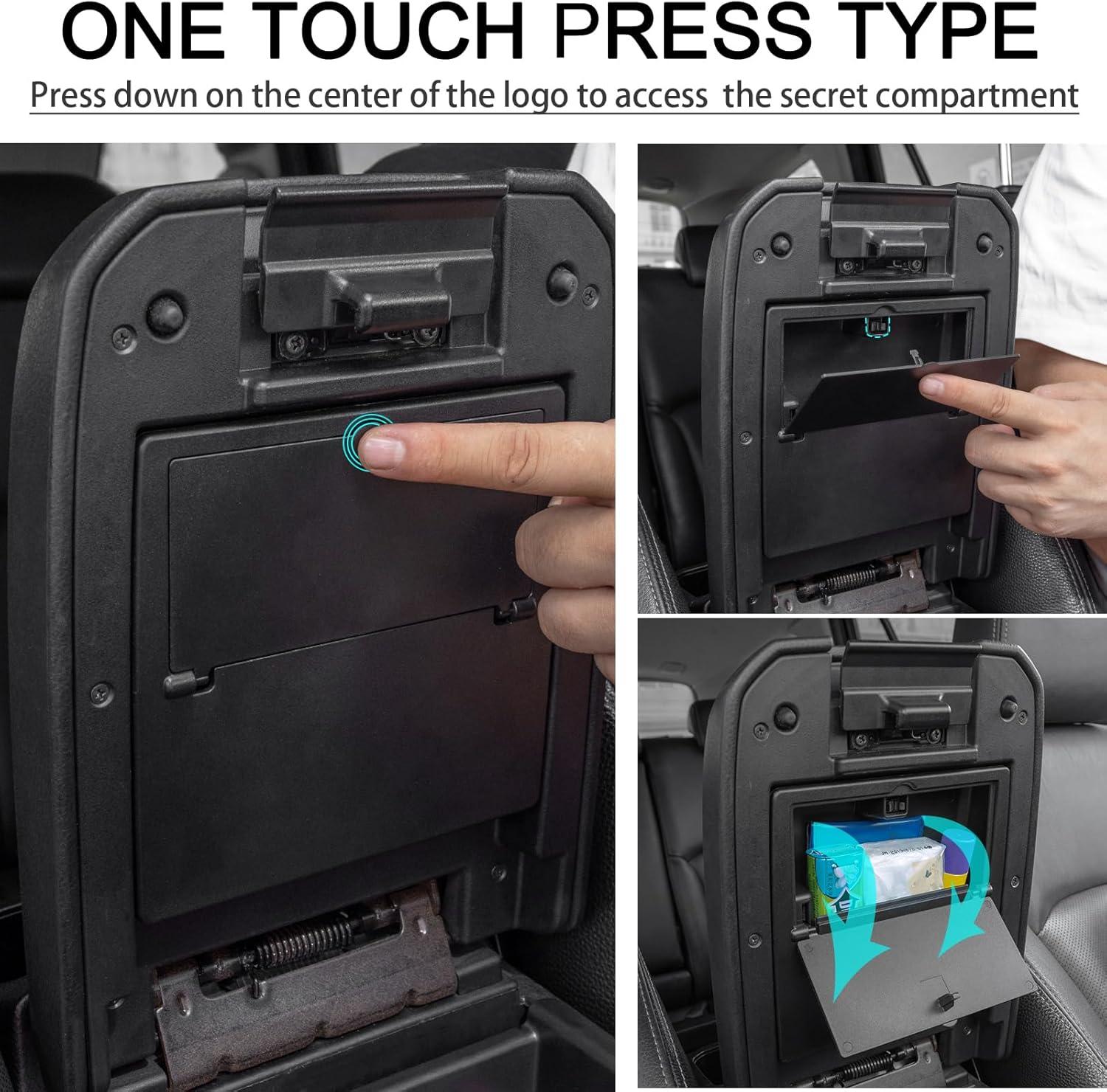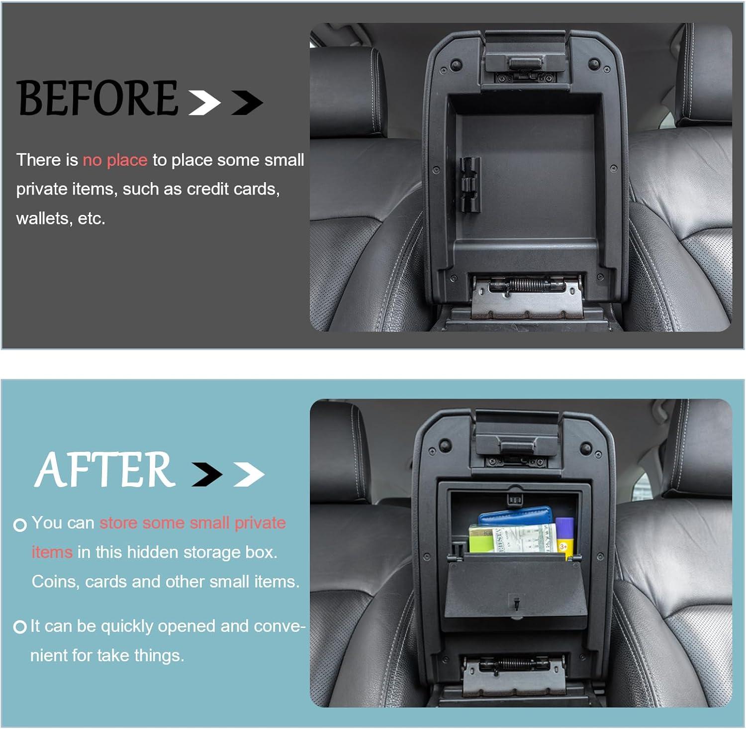 One-Touch Hidden Storage Box —Additional secret storage space: The hidden storage box makes great use of the space in the lid of the console. Providing a discreet and secure area for emergency funds, valuables, and personal items, such as cash, bank cards, and wallets. Make every inch of your car count while storing it neatly.